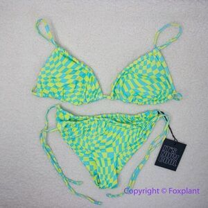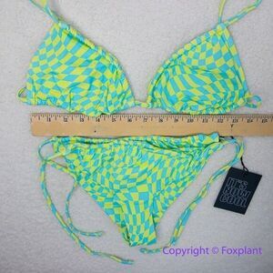 NEW It’s Now Cool x Free People checkered wave lime green  yellow blue bikini set, size M