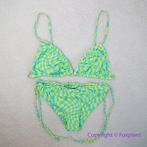 NEW It’s Now Cool x Free People checkered wave lime green blue bikini set, size L
