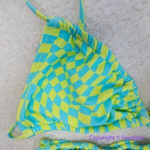 NEW It’s Now Cool checkered wave lime green blue bikini set, size L
