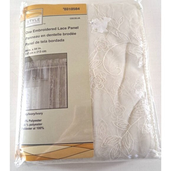 NEW Ivory Lace Curtain Panel Floral Cecelia Cottage Country Romantic 54x84