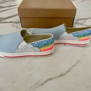 ❤️ NEW J. CREW CREWCUTS 37 RAINBOW GLITTER SLIP ON CANVAS RUBBER BOTTOM SHOES