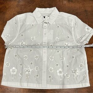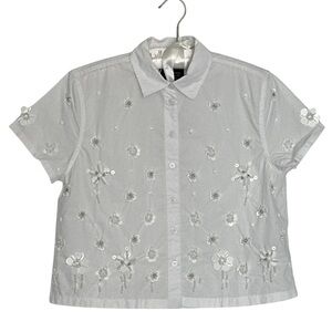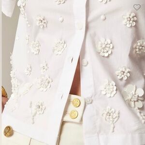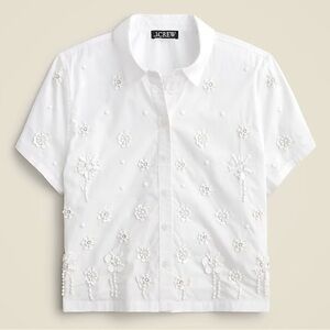 NWT J. CREW Collection embellished button-up shirt White Tonal Sequin & Bead Flowers Size 2