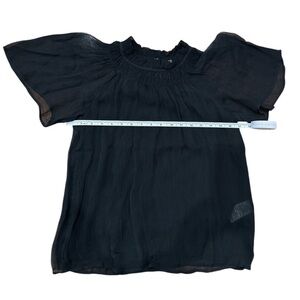 NEW J. CREW Crinkle chiffon smocked top in black semi-sheer Size XXS