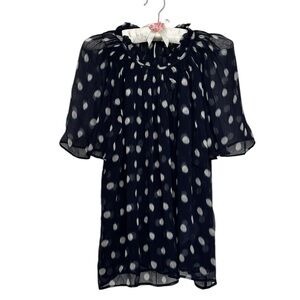 NEW J. CREW Crinkle chiffon smocked top in ombré dot navy & white size small