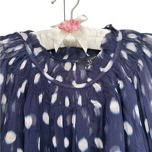 NWT J. CREW Crinkle chiffon smocked top in ombré dot navy & white size small
