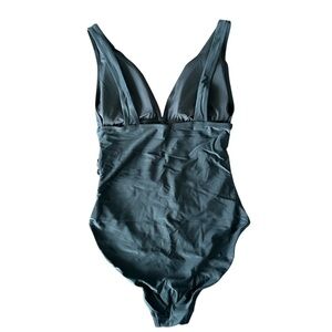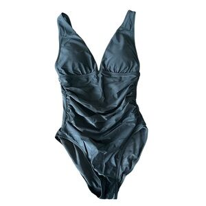 NWT J. CREW Factory V-neck ruched one-piece swimsuit in black Size Medium