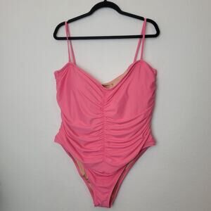 🚨NEW J CREW Pink Ruched Sweetheart One Piece Swimsuit Plus Size 22 Barbie
