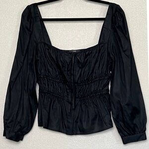 J. Crew Black Cinched Waist Top- Herringbone Cotton