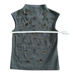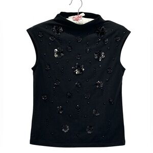 NWT J. CREW Stretch cotton-blend sleeveless mockneck with floral embellishment in black Size Small