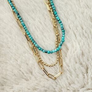 NEW J. Crew Beaded Triple Layer Gold and Turquoise Necklace