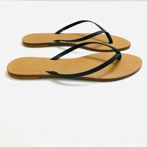 J. Crew Capri Black Leather Thong Flip Flop Sandals Flat 3/8" Heel - 9.5