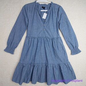 NEW J. Crew Chambray ruffle mini denim jean dress, size 0