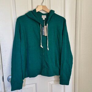 NEW J Crew Cropped hoodie in vintage cotton terry L NWT Deep Spruce Full Zip