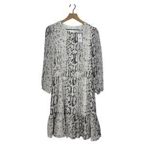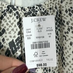 NEW J. Crew Dress Womens Size Medium Gray Snakeskin Balloon Sleeve Smocked Waist