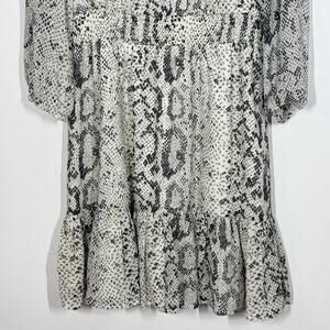 Make a bold yet elegant statement with this eye-catching J. Crew dress. Featuring a subtle gray snakeskin print, this dress effortlessly blends classic sophistication with a modern edge. The lightweight fabric drapes beautifully, while voluminous balloon sleeves add a touch of drama and femininity.
