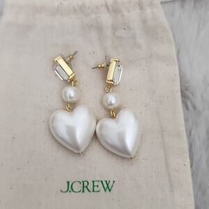NEW J. Crew Elegant Crystal And Pearl Gold White Heart Drop Earrings