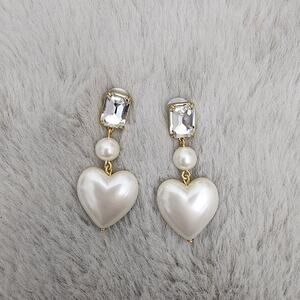 J. Crew Elegant Crystal And Pearl Gold White Heart Drop Earrings