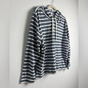 NEW J. Crew Factory Women's XXL Blue & White Striped Pullover Hoodie Coastal
