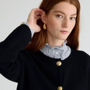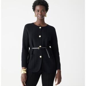 J. Crew, J. Crew sweater blazer, Giselle sweater blazer, Sweater blazer, Black blazer, Black sweater, Women's outerwear, long sleeve, Button-front, Gold buttons, Patch pockets, Ribbed knit, Knit jacket, Cardigan, Sweater coat, Versatile, Classic, Polished, wool blend, Fall fashion, casual chic, everyday layer, wardrobe staple, Spring fashion