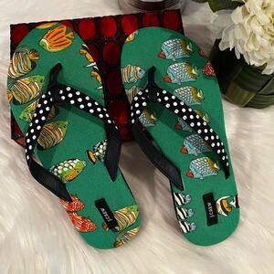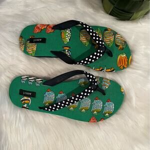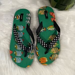 NEW J. Crew Grosgrain Ribbon Classic Polka Dot Tropical Fish Flip Flop Sandals 6