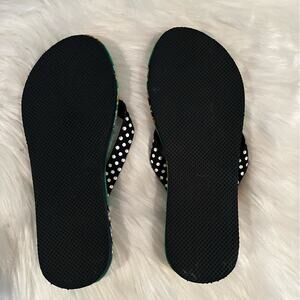 RARE New Vintage J. Crew Grosgrain Ribbon Tropical Fish and Polka Dot Flip Flops. These flip flops are rendered in Vivid Kelly Green with Leather Lined Black Ribbon and White Polka Dots! So Pretty and Brightly colored, these are the perfect J. Crew Summer Flip Flop! Women’s Size 6.