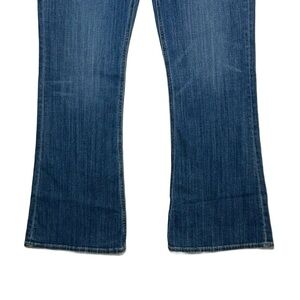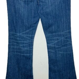 This style features a slim fit through the hips and thighs and a gently flared leg.