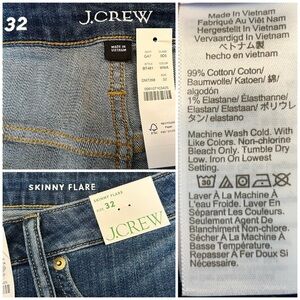 NWOT J. Crew High Rise Skinny Flare Jean in Dark Wash, Size 32. 5 pocket styling with belt loops, zip fly, and perfecting pockets.