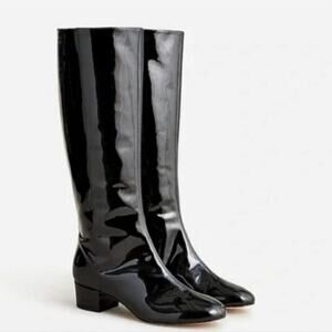 NEW J. Crew Italian Leather Knee High Black Patent Leather Tall Boot 10.5