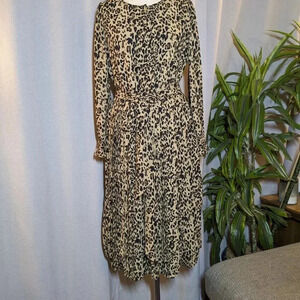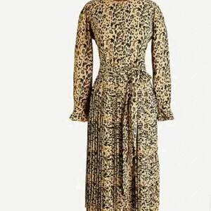 NEW J. Crew Leopard Carly Dress Midi Pleated Long Sleeve Size 0