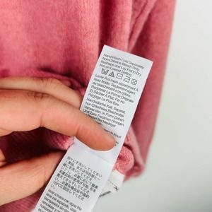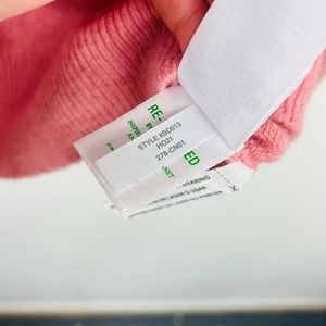 Features: This sweater is a very pretty light pink color. Mock neck. Long sleeved.