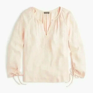 NWT J. Crew Point Sur Drapey Open V-neck Bohemian Peasant Blouse in Light Pink