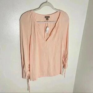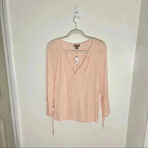 NEW J. Crew Point Sur Drapey Open V-neck Bohemian Peasant Blouse in Light Pink