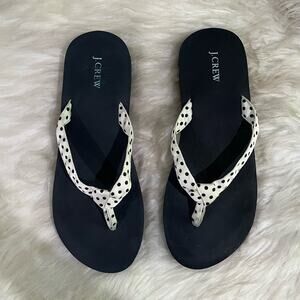 NEW J. Crew Preppy Grosgrain Polka Dot Contrast Classic Flip Flop Slide Sandals