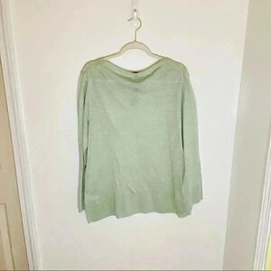 Description: Stay effortlessly cool in this breezy, laid-back J.Crew pullover sweater in a fresh mint green. Made from 100% breathable linen, this lightweight knit is perfect for layering or wearing solo on warm days. The relaxed fit and subtly oversized silhouette give it an easy, swingy drape that pairs beautifully with denim, trousers, or linen shorts. Featuring a classic crew neckline, this piece adds a soft pop of color to your spring-to-summer wardrobe. Whether you're headed to brunch or lounging seaside, it's your go-to for elevated comfort with a minimal, coastal grandmother vibe.