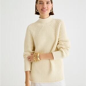 J. Crew Relaxed Rollneck Knit Chunky Ribbed Sweater - Size Small (S) - Linen Cream/Off-White - NWT