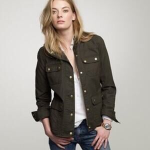 NEW J. Crew Resin Coated Twill Field Jacket Mossy Brown Military Utility Style