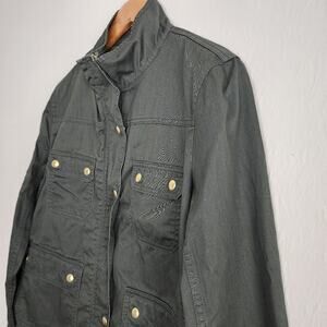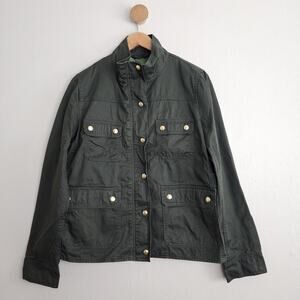 J. Crew Resin Coated Twill Field Jacket - Size Large (L) - Mossy Brown/Olive Green Military Utility Style - NWOT