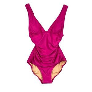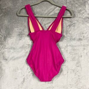 NEW J. Crew Ruched V Neck One Piece Size 0 Pink Radiant Fuchsia