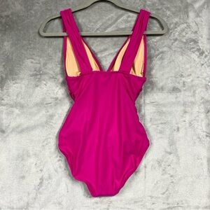 NEW J. Crew Ruched V Neck One Piece Size 4 Pink Radiant Fuchsia
