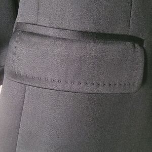 Light to Mid Weight / Lined / Sleeves Lined with Pink Fabric/ Inner Breast Pocket Pink Tie Detailing / Single Button Closure with Fabric Covered Button / Front Welt Pockets/ Left Breast Faux Pocket Accent/ Back Vent/ Sleeves with 4 Fabric Covered Buttons
