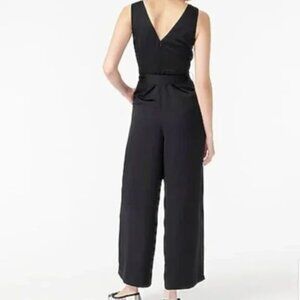 NEW J. Crew V-Neck Wide Leg Jumpsuit Tie Waist Black Matte Satin Sheen NWT Sz 14