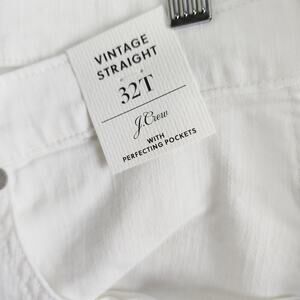 J. Crew, J Crew, Vintage straight jean, vintage fit, High rise, high waisted, 10" rise, Straight leg, straight fit, straight jean, Cropped, crop jean, ankle length, White denim, white jeans, white pants, Button fly, 5-pocket styling, Cotton, elastane, "Perfecting Pockets, Vintage style, retro, Classic, timeless, Clean girl aesthetic, minimalist, Preppy, preppy style, Coastal, coastal grandmother, Summer, spring, casual, Everyday wear, Versatile