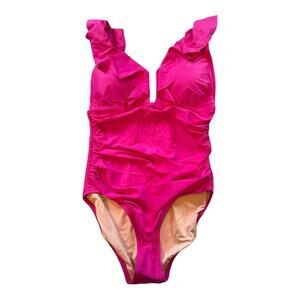 NEW J. Crew Women’s Size 12 Ruched Ruffle One-Piece Swimsuit Radiant Fuchsia NWT