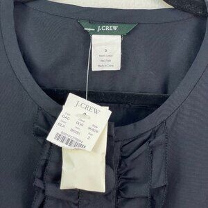 NEW J. Crew Womens Size 2 Black Ruffle Front Button Up Shirt Long Sleeve Top