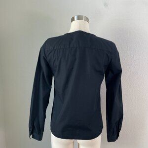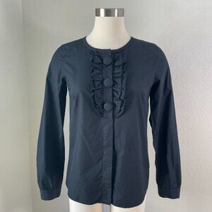 NEW J Crew Womens Size 2 Black Ruffle Front Button Up Shirt Long Sleeve Top
