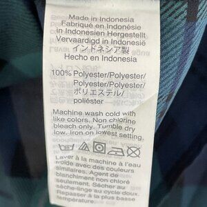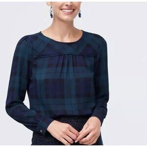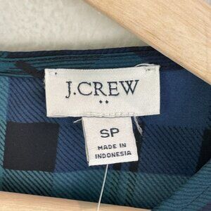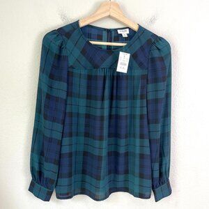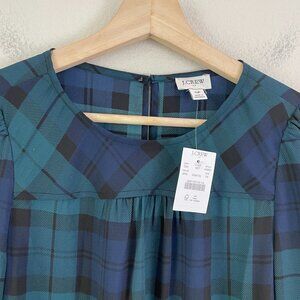 NEW J Crew Womens Small Peasant Plaid Print Blouse Black Green Navy Shirt Top