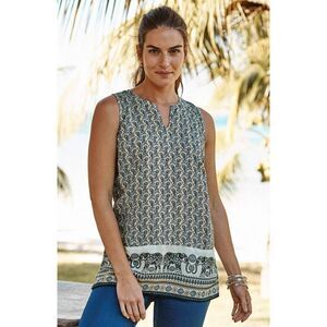 Split-neckline top has a summer-perfect print to brighten your style and your day. It's a light, easy piece that's great with pants, jeans, shorts and skirts, on its own or with a cardi or light jacket. A seam above the hemline has on-seam front pockets for a fun, casual touch. Bust darts offer a perfect fit and side vents offer ease.