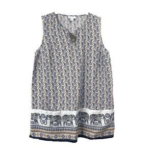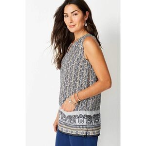 J. Jill 100% linen Sleeveless Tunic Top Sz S elephant floral print