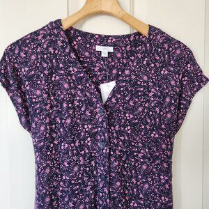 NEW J. Jill Navy Blue & Pink Floral Paisley Button Front Midi Dress Cottagecore