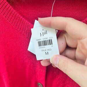 This J. Jill long cardigan in True Red offers both style and comfort. The button-down design and front pockets provide practicality and a polished look.